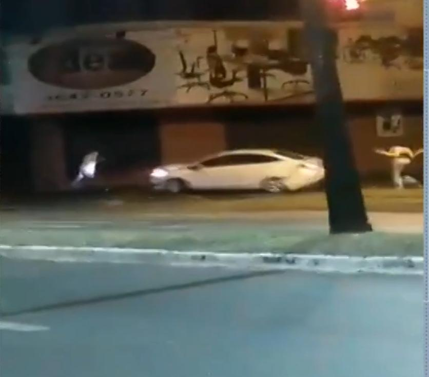 Um homem não identificado foi preso na noite de domingo (10) por tentar atropelar um policial militar que o havia impedido de agredir a mulher no setor Oeste, em Goiânia. A ação foi gravada por moradores da região e testemunhas que passavam pelo local.