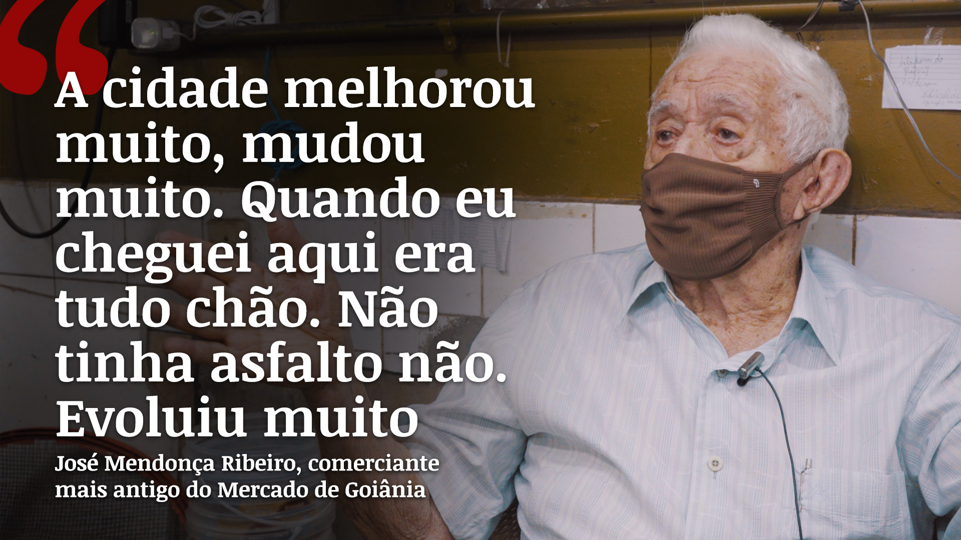 José Mendonça Ribeiro tem 95 anos e é o comerciante mais antigo do Mercado Central de Goiânia, localizado na Rua 3, no centro da capital. Ele afirma que, nesses 71 anos, viu muita coisa mudar na cidade.