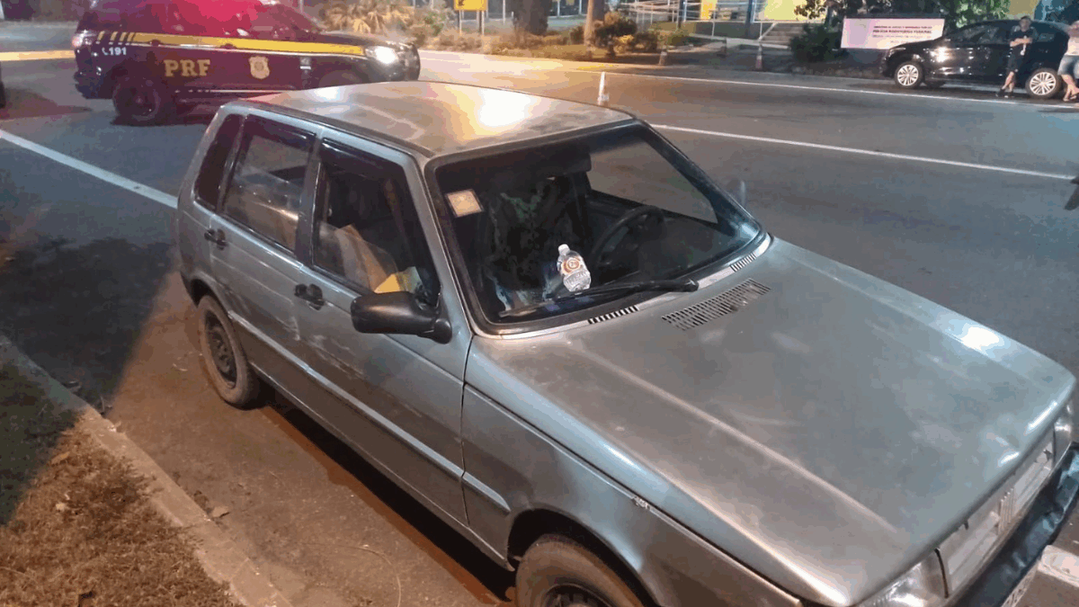 Além disso, o condutor dirigia com a Carteira Nacional de Habilitação (CNH) vencida há mais de 10 anos. O veículo também apresentava irregularidades, como pneus carecas. Além disso, um frasco de cachaça foi encontrado no interior do carro.