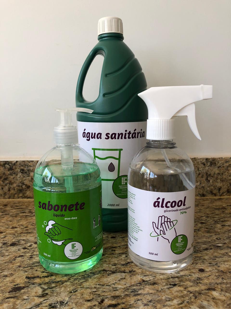 A fabricação do álcool glicerinado a 70%, sabonete líquido e água sanitária está sendo realizada nos laboratórios de química do Câmpus Aparecida de Goiânia e a distribuição dos kits à população será feita com apoio da prefeitura da cidade.