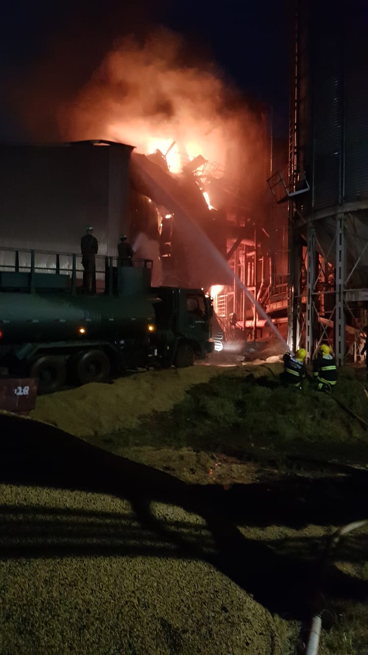 Bombeiros combatem incêndio em empresa que beneficia soja em Ipameri (Foto: BMGO)