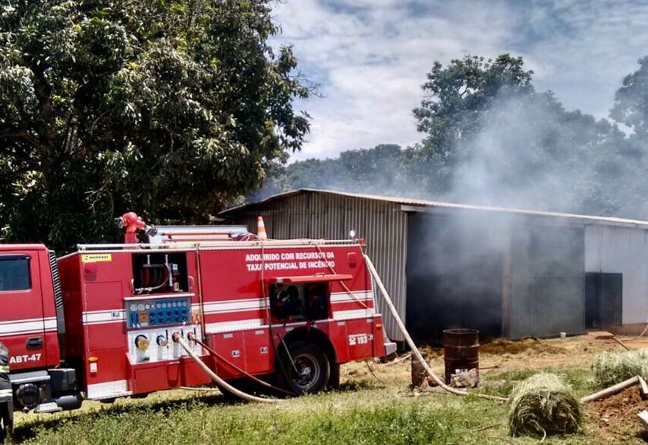 Incêndio em galpão de feno é controlado pelos bombeiros, em Formosa