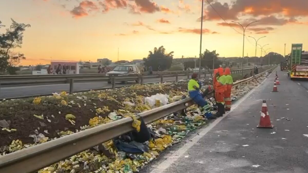 Um caminhão carregado de bebidas perdeu parte dos produtos após fazer uma manobra brusca para evitar uma colisão na BR-153, no perímetro urbano de Anápolis. O incidente aconteceu na noite de quarta-feira (14).