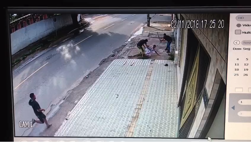 Vítima sendo agredida pelos indiciados (Foto: Reprodução/WhatsApp)
