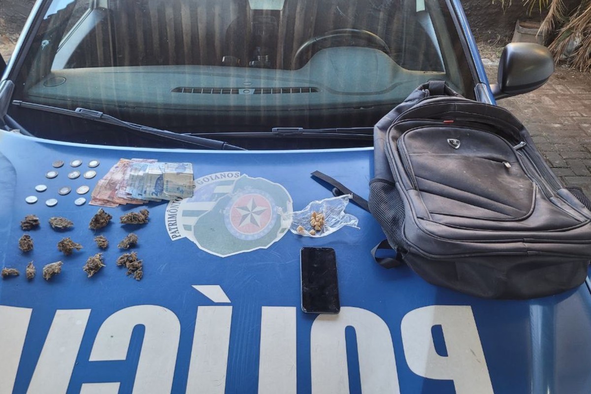 Na bolsa, a polícia encontrou 15 porções de maconha e uma porção de crack dividida em 12 pedras. O suspeito também estava com R$ 201 em cédulas de pequenos valores e um celular.