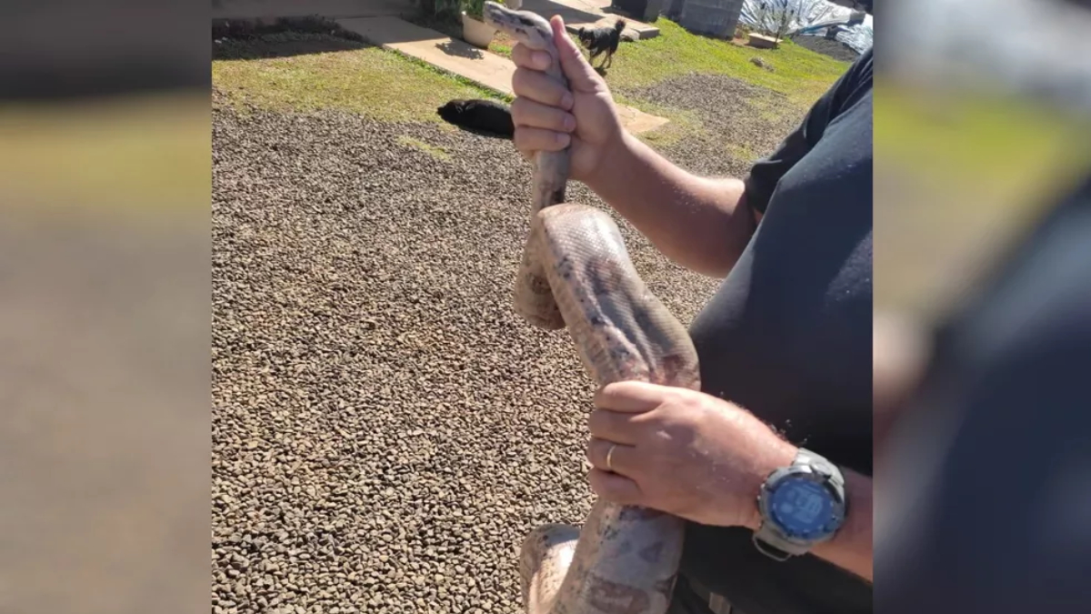Servidores da Penitenciária Masculina de Rio Verde, no Sudoeste de Goiás, encontraram uma jiboia no jardim da unidade prisional, nesta quinta-feira (1º). Segundo a Diretoria-Geral de Administração Penitenciária (DGAP), o presídio fica na zona rural do município e a serpente estava exposta ao sol quando foi capturada. Especialista explica que, devido ao frio, o animal provavelmente estava em busca de luz solar para se aquecer.