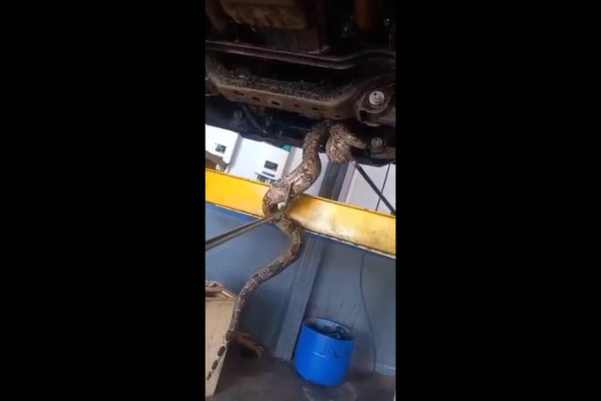 A equipe conduziu o carro até uma oficina especializada, onde suspenderam o automóvel em um elevador. De acordo com a corporação, o objetivo era retirar a jiboia com segurança para evitar danos ao animal e aos envolvidos na operação.