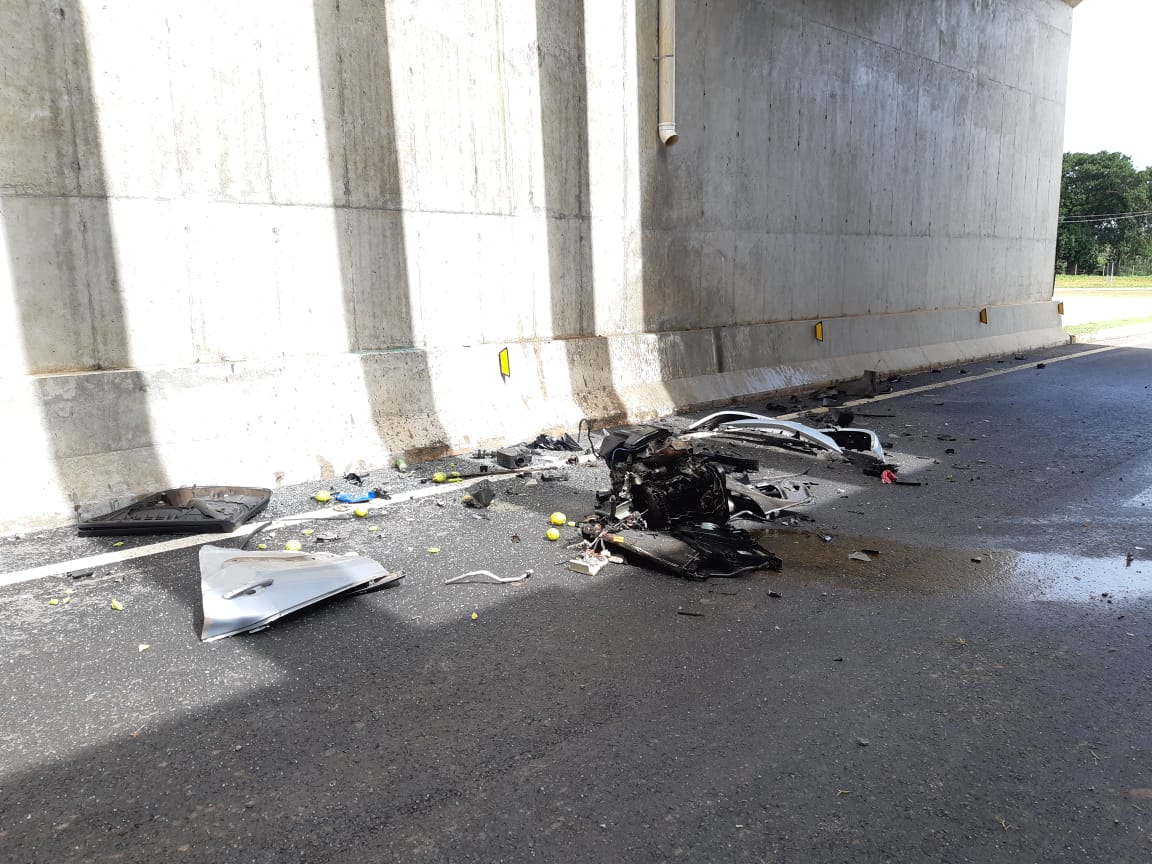 De acordo com a Polícia Rodoviária Federal (PRF), o condutor de um Renault/Megane que seguia no sentido Brasília/São Paulo perdeu o controle da direção do carro, saiu da pista, colidiu com as vigas do viaduto e logo em seguida o carro tombou.