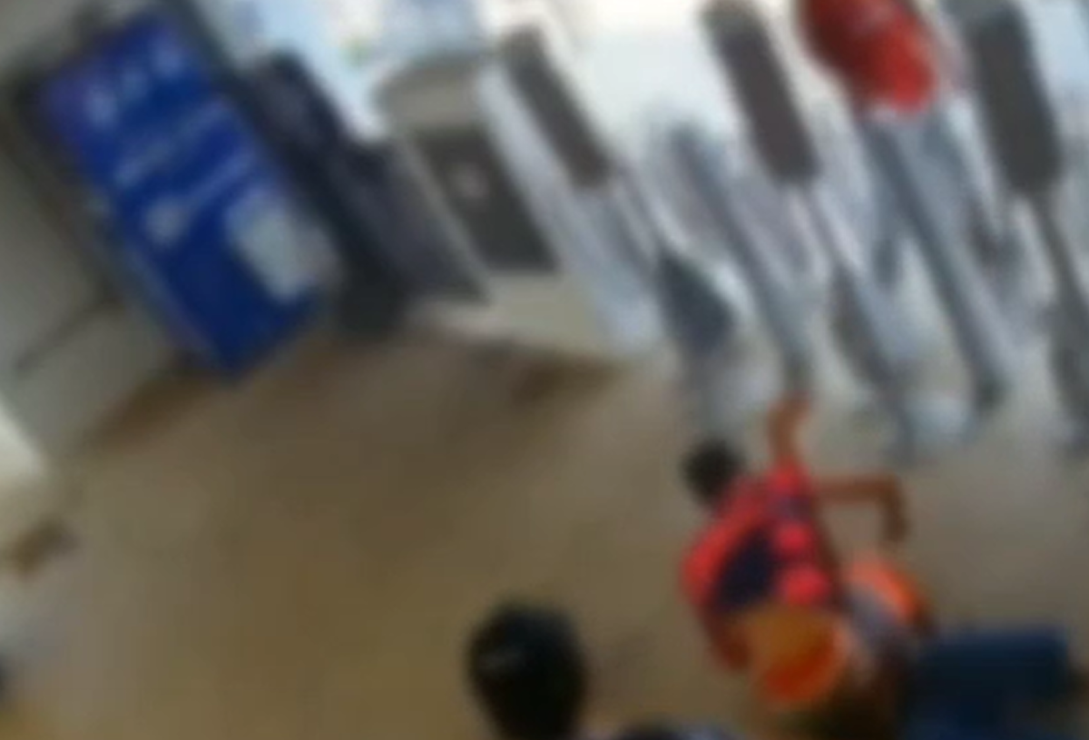 Uma câmera de segurança registrou o momento em um jovem derruba outro, de 22 anos, e o esfaqueia no Terminal Bandeiras, localizado no Jardim Europa, em Goiânia, no último sábado (7).