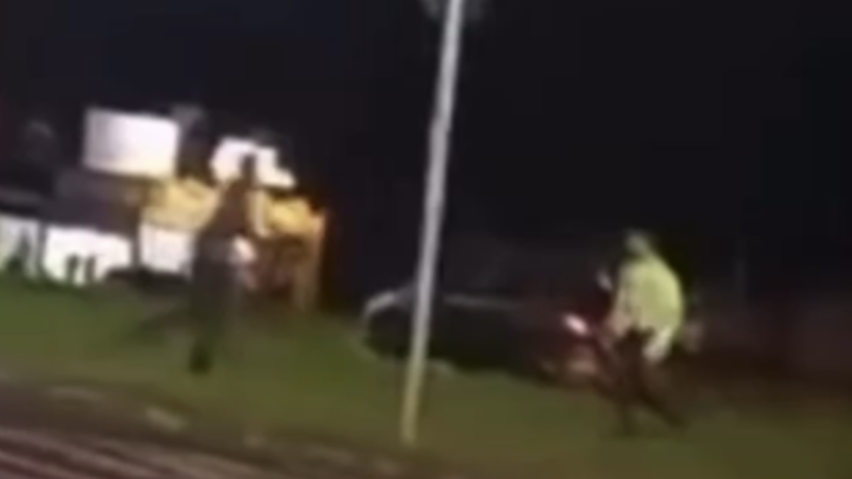 testemunha filmou momento em que suspeito correu atrás dos agentes, com uma garrafa de cerveja na mão