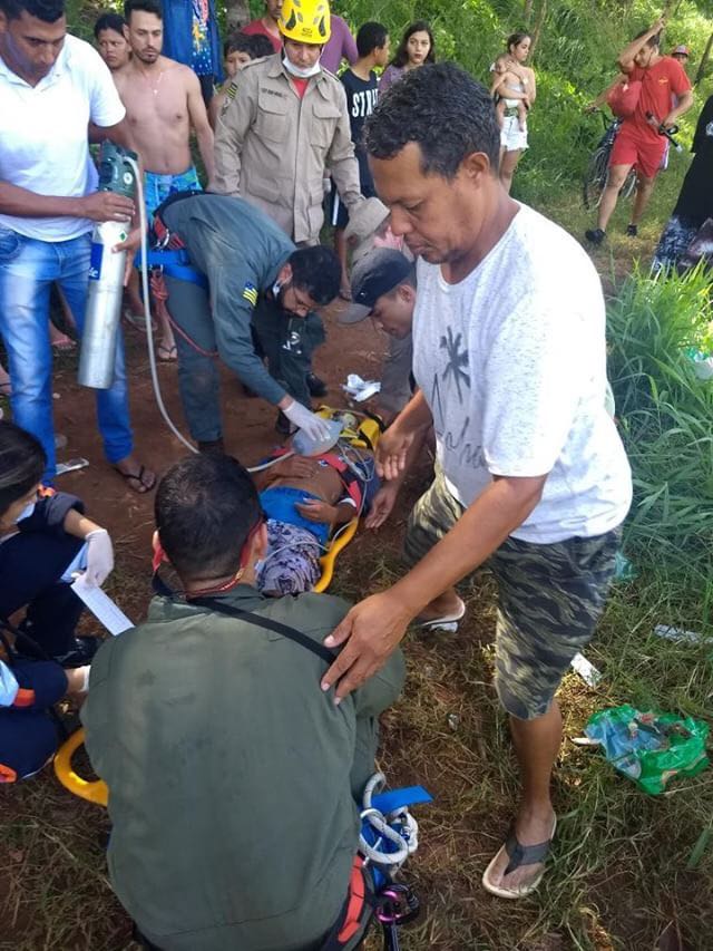 Pela gravidade do quadro do rapaz, o helicóptero da corporação foi acionado para transportar o jovem até Hospital Estadual de Urgências Governador Otávio Lage de Siqueira (Hugol). Segundo testemunhas, os dois seriam irmãos, mas o Corpo de Bombeiros não confirma a informação.