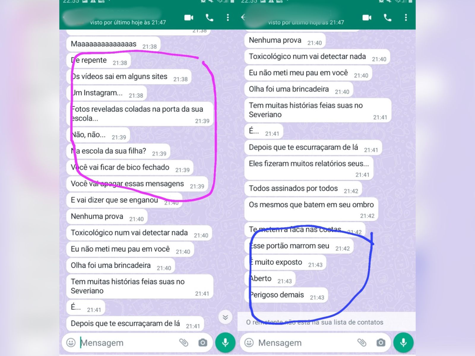 O Mais Goiás teve acesso a prints de mensagens atribuídas ao suspeito. Em uma delas, ele cita que a vítima tem filhas e que pode colocar tudo que tem dela nas redes sociais. “De repente, os vídeos saem em alguns sites. Um Instagram… Fotos reveladas e coladas na porta da sua escola… Não, não… Na escola da sua filha? Você vai ficar de bico fechado. Você vai apagar essas mensagens”, diz em um trecho da conversa.