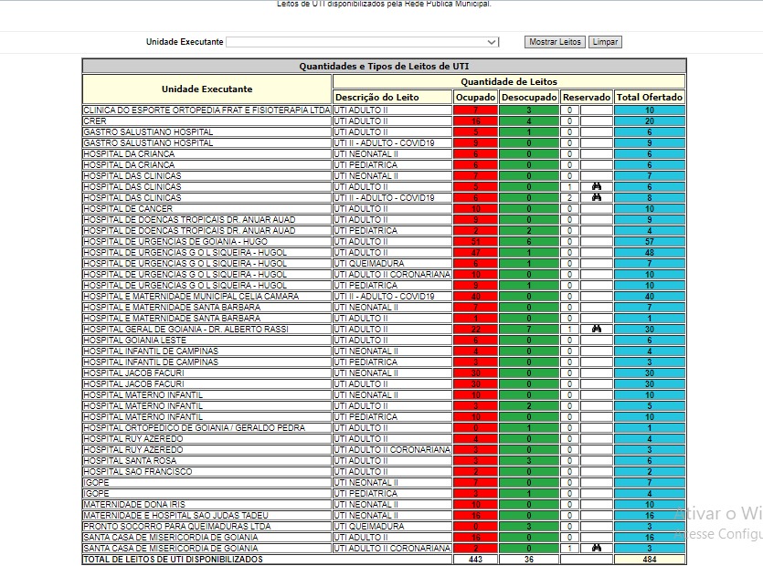 Os leitos de Unidade de Terapia Intensiva (UTI) destinados a pacientes com Covid-19, mantidos pela Secretaria de Saúde de Goiânia (SMS), estão todos os ocupados, de acordo com o painel de regulação. O Mais Goiás fez a verificação na tarde desta terça-feira (16). Apesar disso, a pasta destaca que esse número oscila com frequência e diariamente.