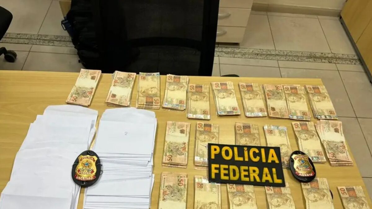 Durante a operação da Polícia Federal, neste sábado (26), os policiais encontraram R$ 21.650 fracionados em envelopes brancos numerados, lista de presença com 50 assinaturas de eleitores e equipamentos eletrônicos.