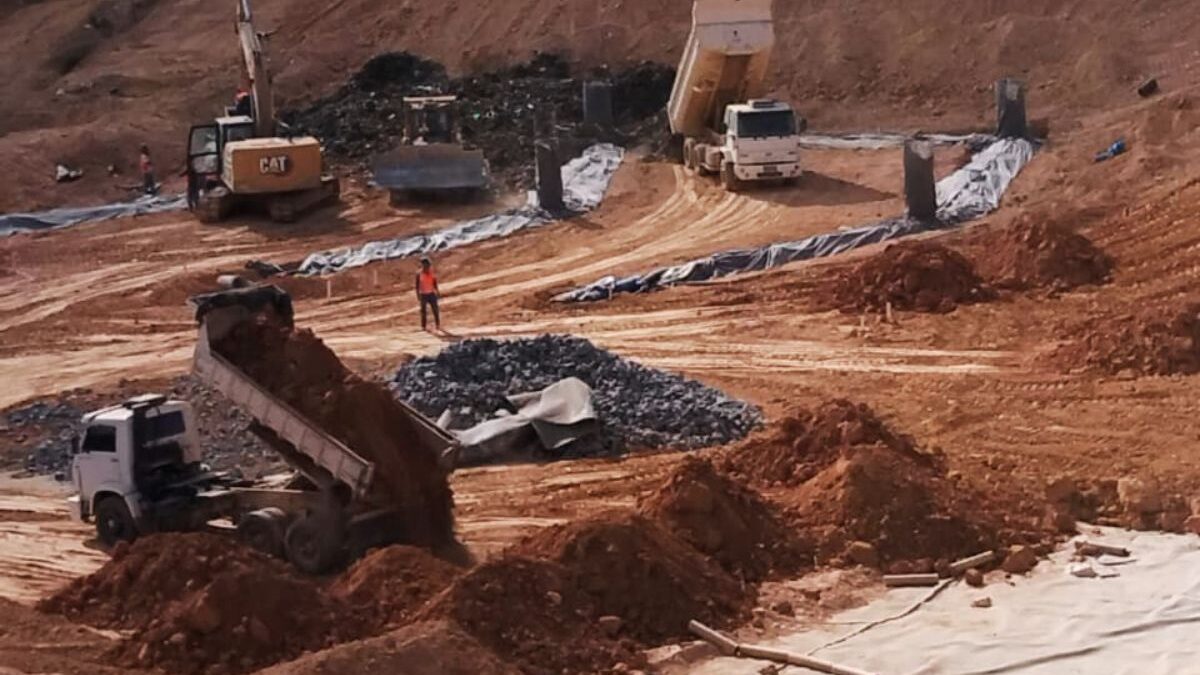 Mais de 560 viagens de caminhão já foram realizadas. O lixo está sendo disposto de forma temporária em uma célula dentro da mesma propriedade. Uma segunda célula, com a mesma finalidade, está em processo de impermeabilização – metade desse serviço já foi concluído.