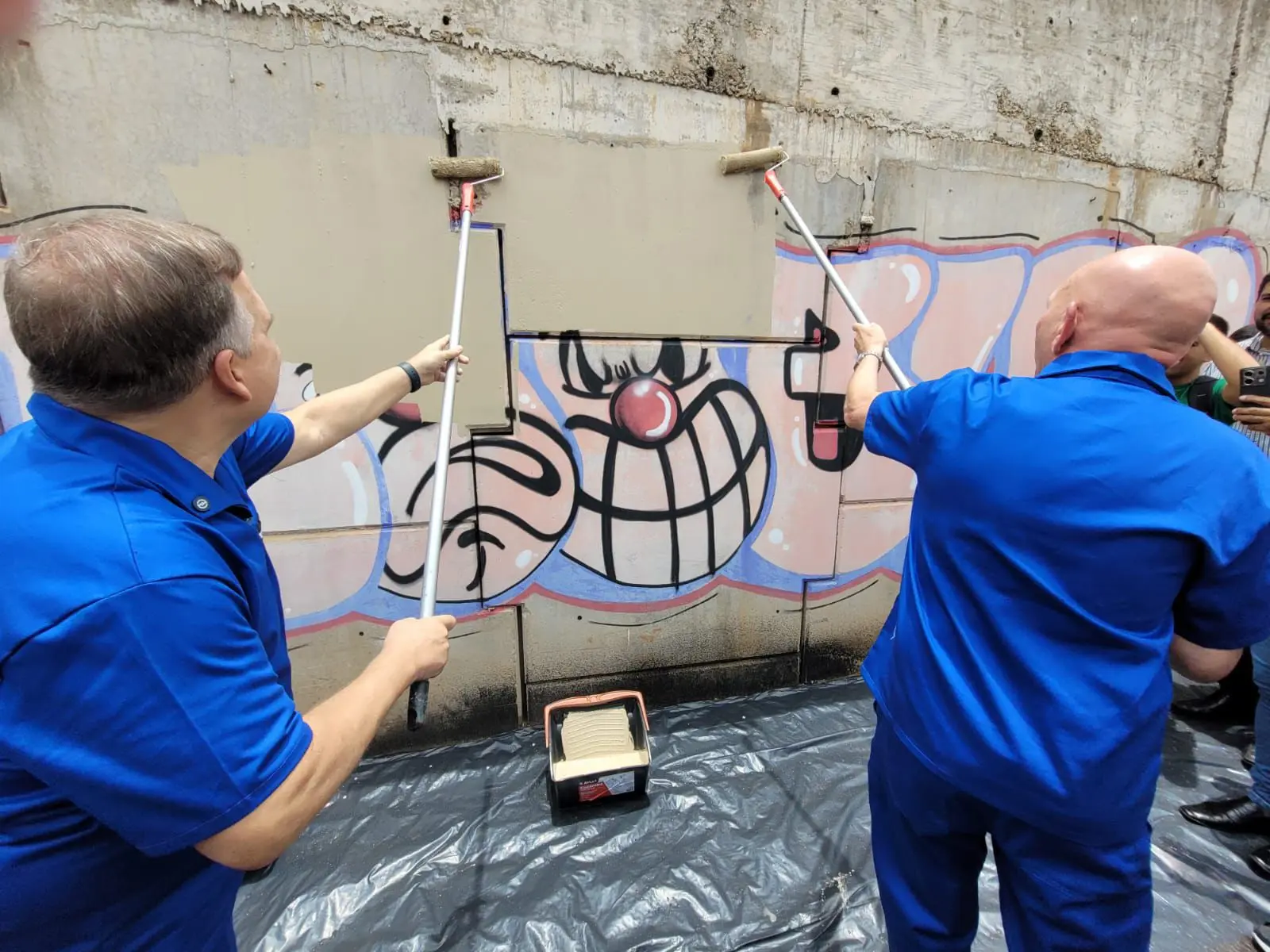 Durante agenda na capital para a abertura de uma nova unidade da varejista, o empresário Luciano Hang e o prefeito Sandro Mabel participaram, na manhã desta sexta-feira (30), de uma ação de pintura do viaduto Iris Rezende Machado, localizado em frente à Havan, em Goiânia. A iniciativa teve como objetivo remover pichações.