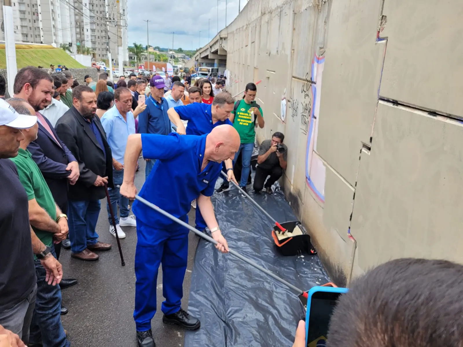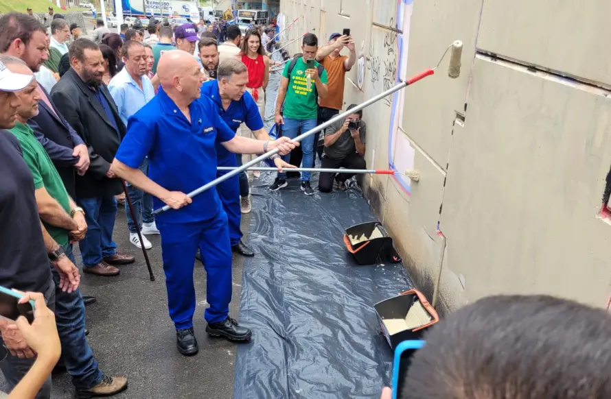 A atividade ocorreu poucas horas após a chegada de Luciano Hang à cidade para a inauguração da megaloja da Havan, prevista para este sábado (31). O empresário recebeu Sandro Mabel no local e, de forma simbólica, entregou ao prefeito uma vestimenta de pintor. Em seguida, ambos participaram da cobertura das pichações no viaduto.