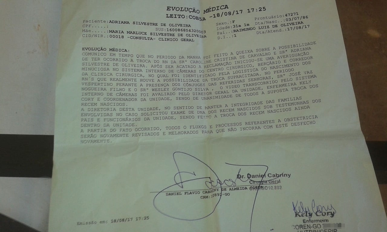 Em outro quarto, Caroline Cristina, de 28 anos, passava pela mesma situação. Ela estava com a filha de Adriana e longe de sua bebê. Após insistência das mães, o hospital realizou a investigação que comprovou a troca. O parto das mulheres aconteceu em horas próximas e as recém-nascidas foram colocadas em berços errados.