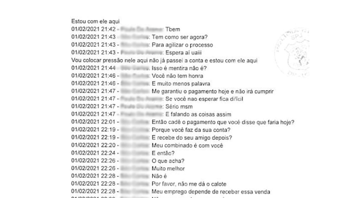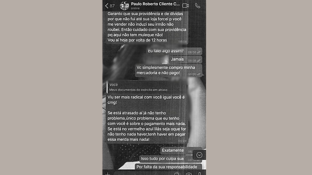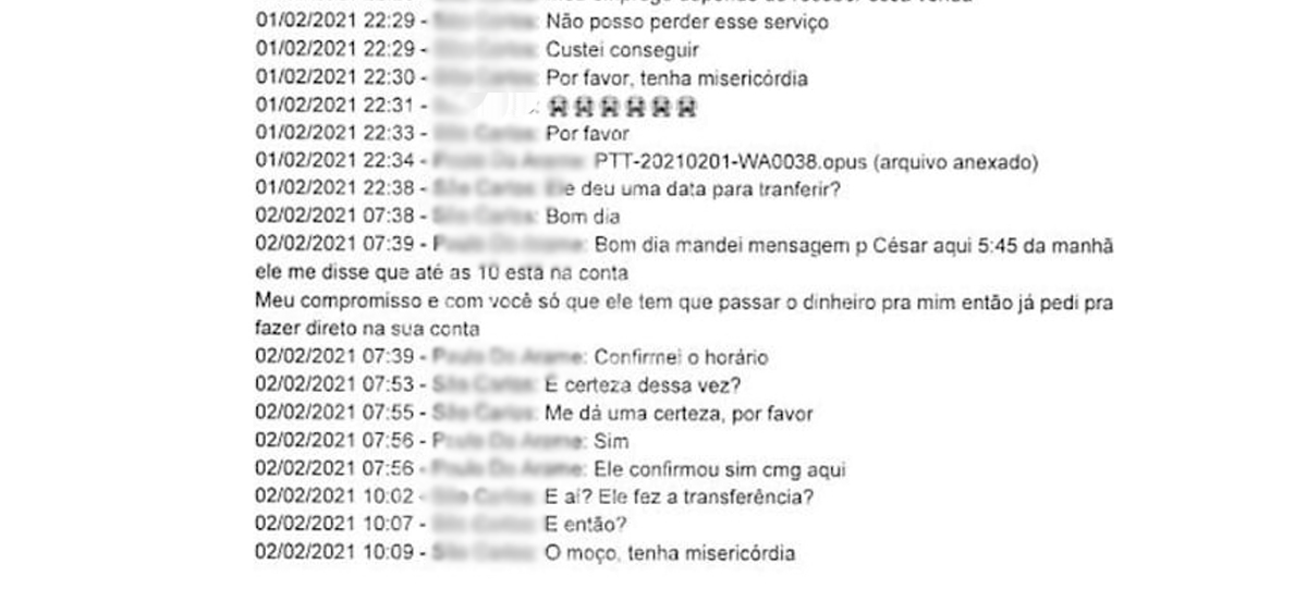 Durante uma outra conversa com um comerciante, Paulo afirma que uma outra pessoa iria resolver ‘o problema do pagamento’. A vítima implora ao suspeito, “por favor, não me dá calote, tenha misericórdia. Meu emprego depende de receber essa venda”, diz a vítima segundo a conversa.