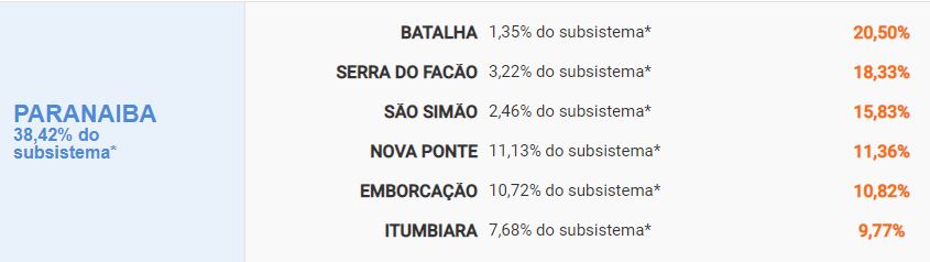 De acordo com Furnas, que administra a usina, no início da última semana a geração média da hidrelétrica de Itumbiara foi de 388 MW, o que equivale a 19% da capacidade total da unidade.