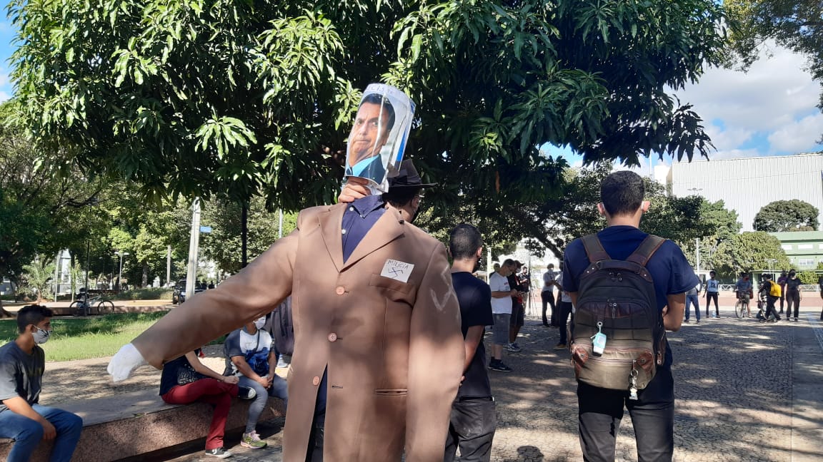 Aos gritos de “fogo nos racistas” e “fora Bolsonaro”, os manifestantes pela democracia deste domingo (7) colocaram fogo em um boneco do presidente Jair Bolsonaro. A ação ocorreu na rua 10, enquanto o grupo seguia para a Praça Universitária, em Goiânia.