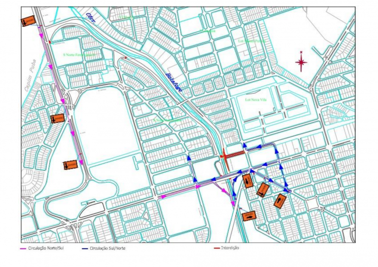 Interdição deve durar até às 18h desta sexta-feira e ocorre em razão da concretagem do viaduto entre a Av. Leste/Oeste e Marginal Botafogo