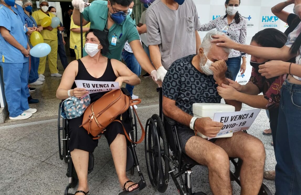Casados há 30 anos, Robis Pierre, de 61 anos, e Zilda Maria, de 50, levaram os votos matrimoniais de “na saúde e na doença” ao pé da letra. O casal deu entrada no Hospital Municipal de Aparecida de Goiânia (Hmap) com diagnósticos de Covid-19 no início do mês e chegaram a ter 75% de comprometimento pulmonar. No entanto, venceram a doença e receberam alta juntos. O casal saiu da unidade de mãos dadas e sob aplausos dos funcionários.