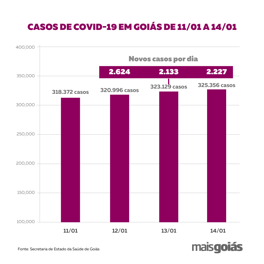 No dia 12 de janeiro, as autoridades sanitárias de Goiás registraram 2.624 casos novos. No dia 13 de janeiro, foram 2.133; e, no dia 14, 2.227 casos.