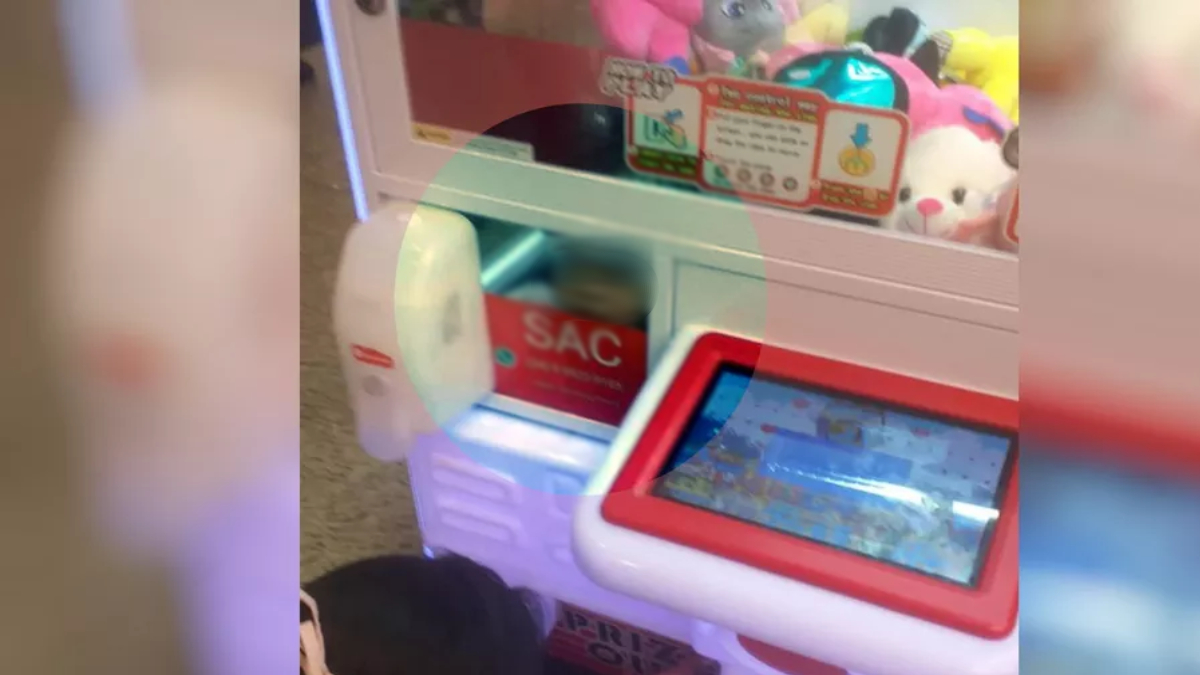 Criança entrou na máquina por uma pequena abertura de onde os brinquedos são retirados
