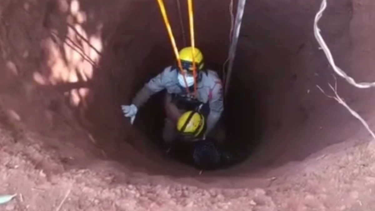 Uma menina foi resgatada sem ferimentos após queda de 15 metros em cisterna. Caso aconteceu em Jataí.