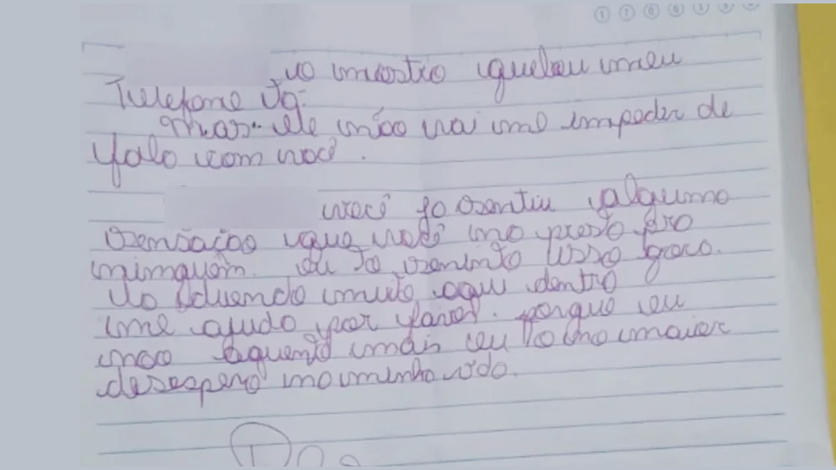 “Já sentiu a sensação de que você não presta para ninguém? Estou sentindo isso. Está doendo muito aqui dentro. Me ajuda, por favor. Não aguento mais. Estou no maior desespero da minha vida”, escreveu na carta.