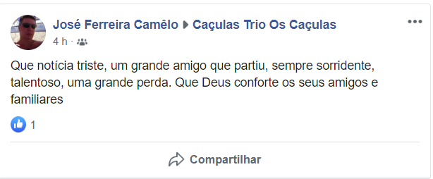 Várias outras mensagens foram enviadas, desejando força à família e celebrando o talento do músico. “Que Deus conforte toda sua família pois sei que a dor é forte por perder alguém como vc, alegre, destemido, confiante, determinado e acima de tudo muito companheiro…”.