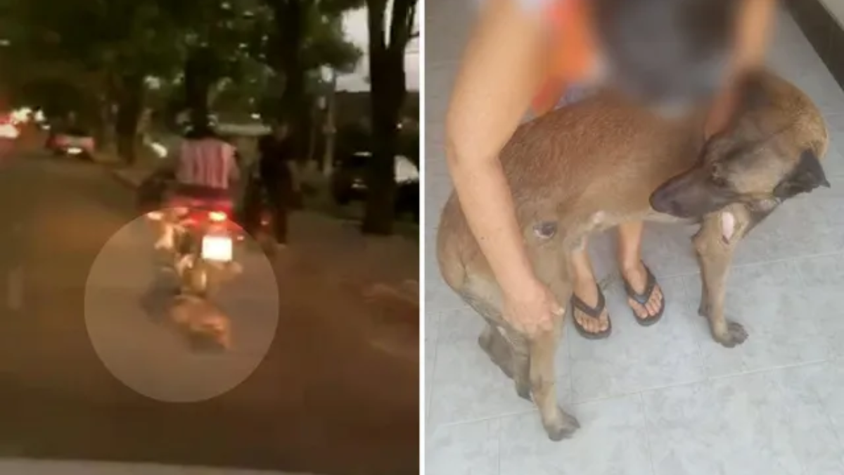 Uma motociclista de 53 anos arrastou um cachorro após a coleira ficar presa no veículo, em Pirenópolis. O animal correu em direção à moto para perseguir um gato e acabou se prendendo ao veículo. Segundo a Polícia Civil, a condutora pensou que estava sendo perseguida pelo cão e acelerou.