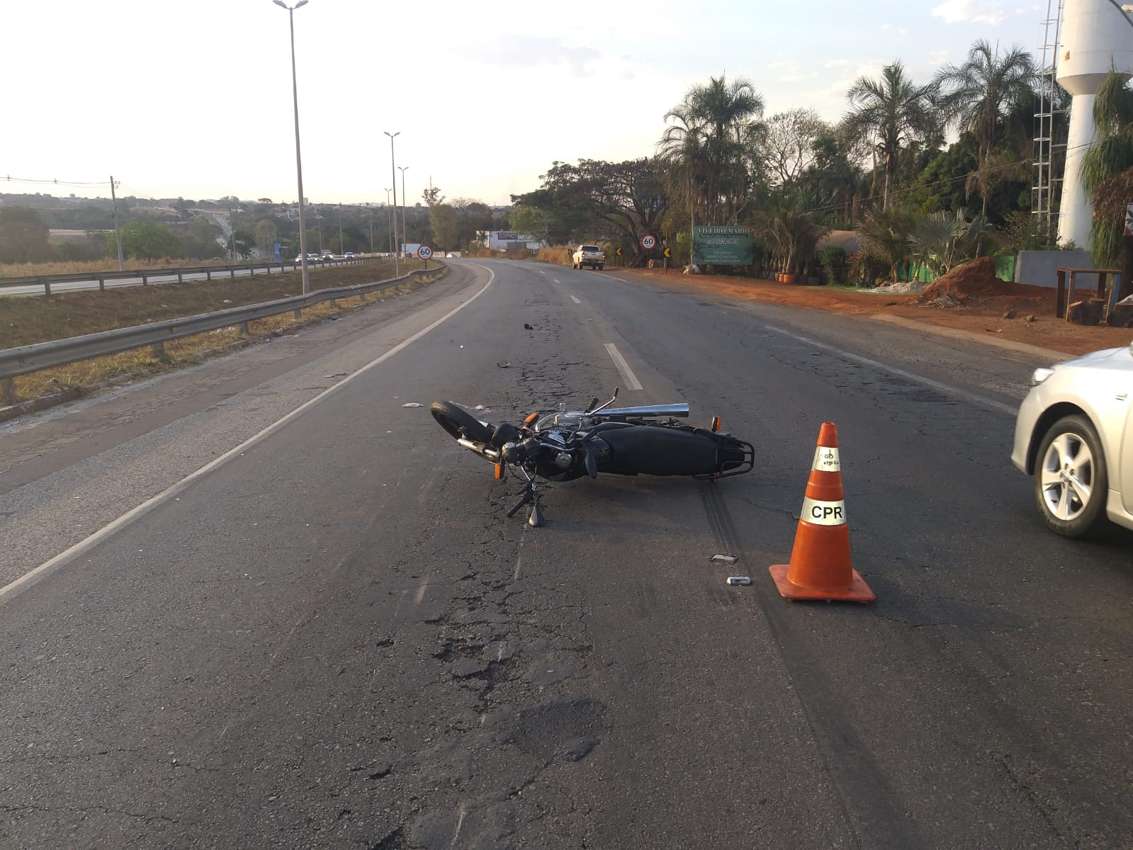 Motociclista fica em estado gravíssimo após bater na traseira de caminhonete na GO-070, em Goiânia - (Foto: divulgação - Dict)