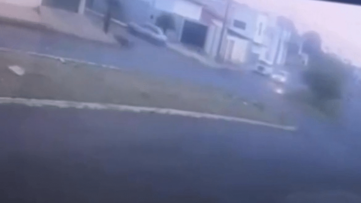 Imagens mostram quando o motorista ignora a sinalização de ‘pare’ e atravessa o cruzamento em alta velocidade. Na sequência, ele atinge a vítima, que seguia pela rua transversal. Após a batida, o condutor ainda foge do local sem prestar socorro.