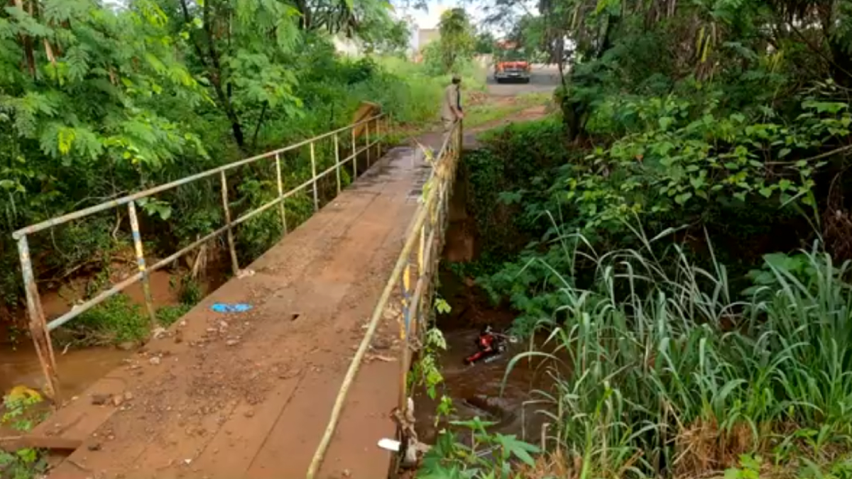Corpo da vítima caiu dentro de um córrego e foi localizado pelo Corpo de Bombeiros a cerca de 500 metros de onde a moto foi localizada