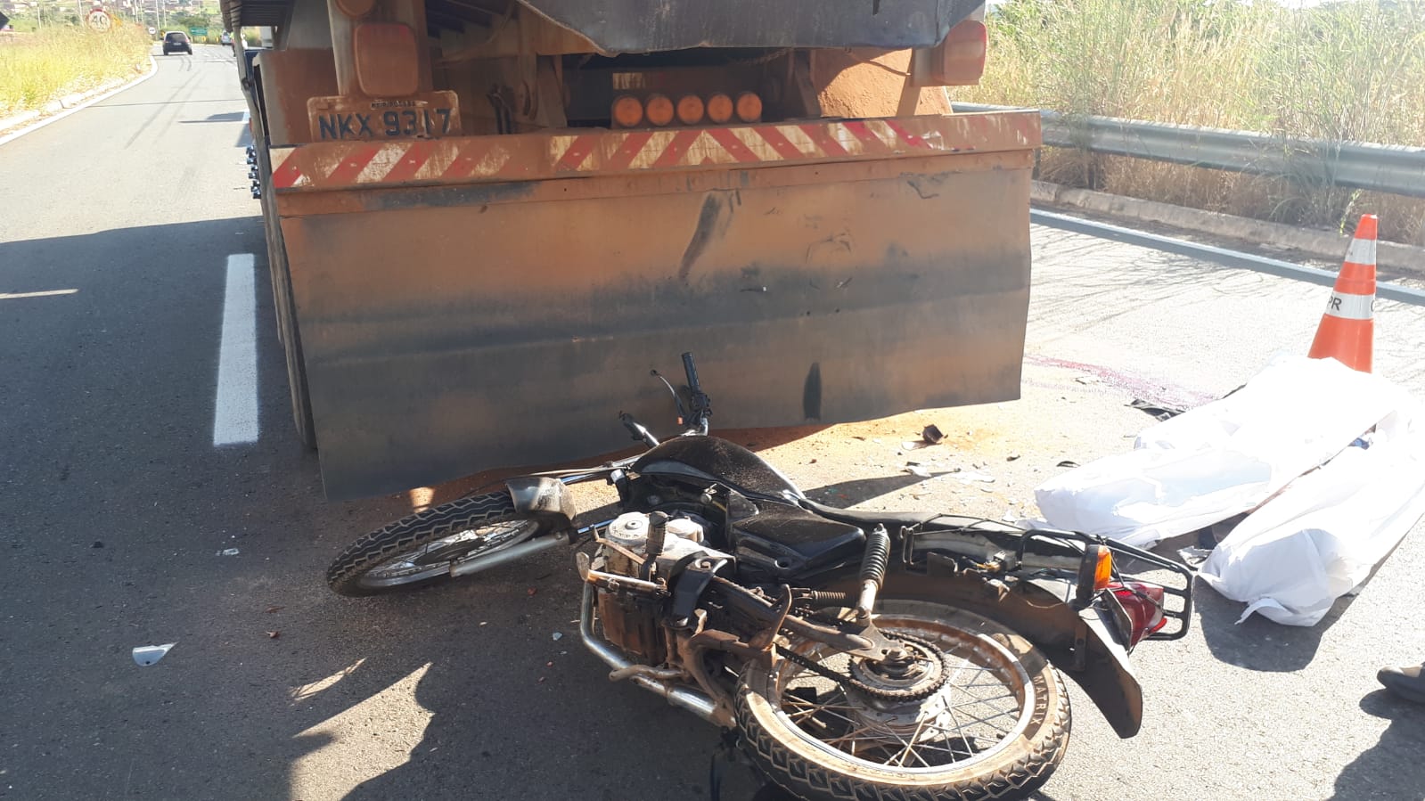 Informações da Delegacia de Investigação de Crimes de Trânsito (DICT) são de que o motociclista trafegava entre os carros parados, devido à interdição da pista, quando colidiu na traseira de um caminhão-caçamba, que não transportava carga no momento do acidente.
