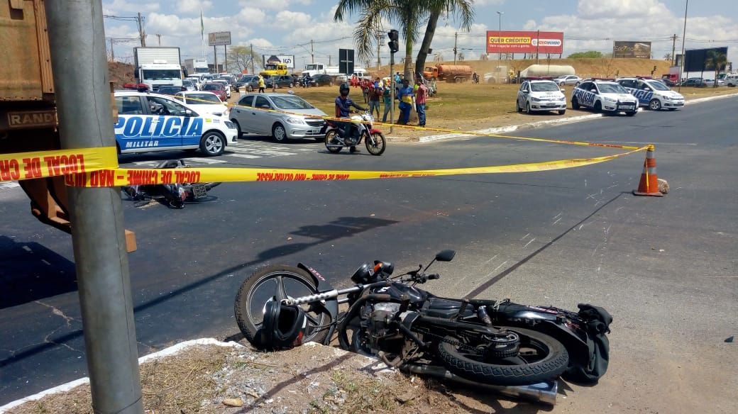 Um motociclista morreu e outro ficou ferido após um acidente envolvendo um caminhão e duas motos no cruzamento das avenidas Perimetral Norte e Goiás, no início da tarde desta segunda-feira (9). De acordo com a Delegacia de Investigações de Crimes de Trânsito (Dict), ainda não se sabe o que ocasionou a batida, mas o local estava bem sinalizado.