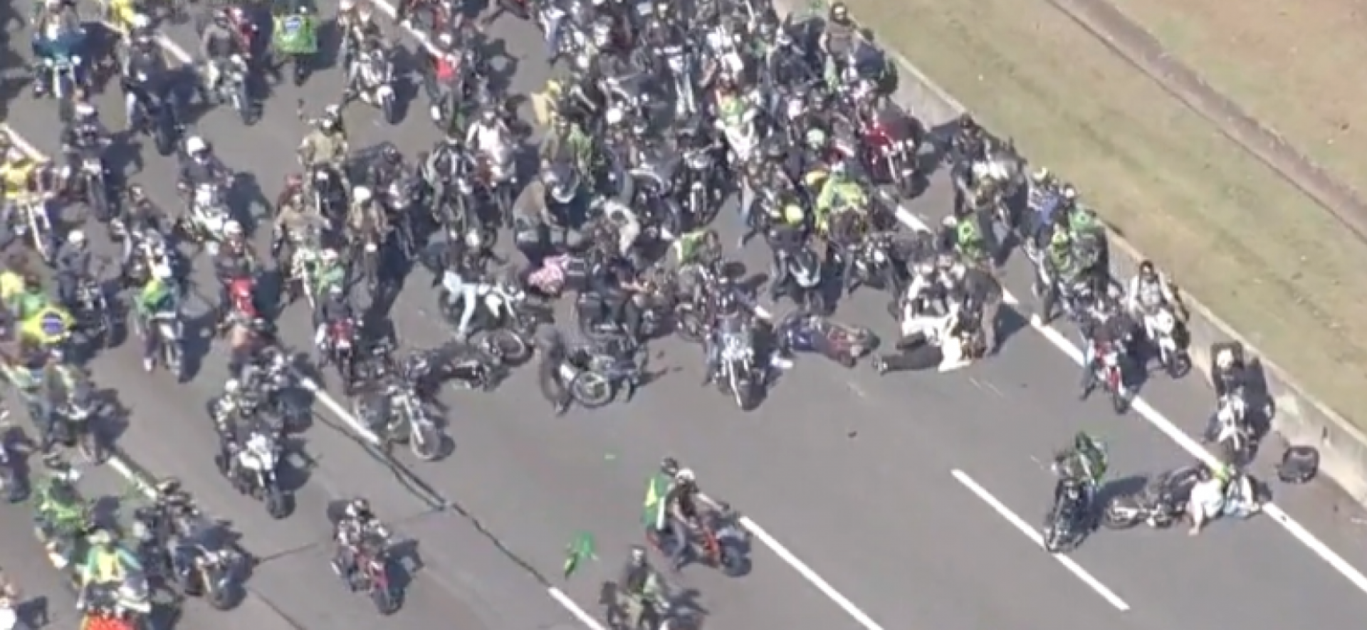 Uma pessoa ficou deitada no asfalto aguardando atendimento enquanto os outros motoqueiros retomaram a motociata. O acidente foi flagrado ao vivo pelo BandNews TV, que mostrou uma das motos perdendo o equilíbrio