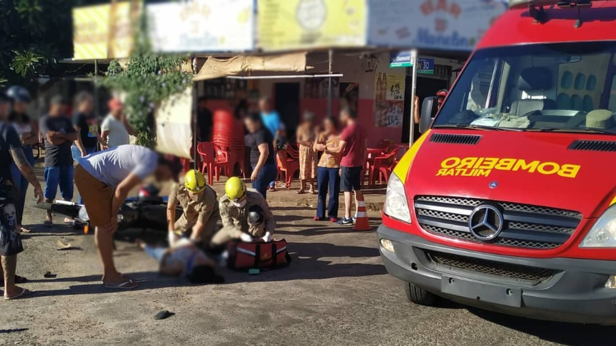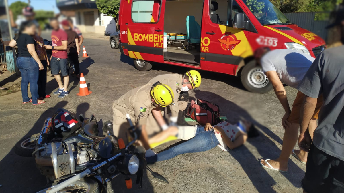 Uma motociclista de 36 anos sofreu uma fratura exposta na perna após colidir contra outra motocicleta, no bairro Nova Aurora III, na cidade de Goianésia, na região Central de Goiás. O acidente aconteceu por volta das 15h deste domingo (25), em um cruzamento. Testemunhas relataram que o outro envolvido estaria embriagado e fugiu do local sem prestar socorro.