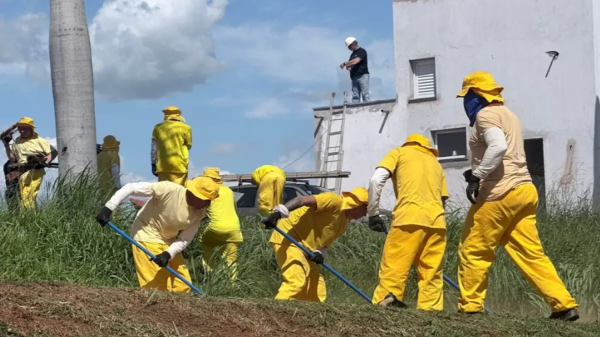 Os trabalhos são realizados em dois turnos, com supervisão e escolta de agentes da Polícia Penal