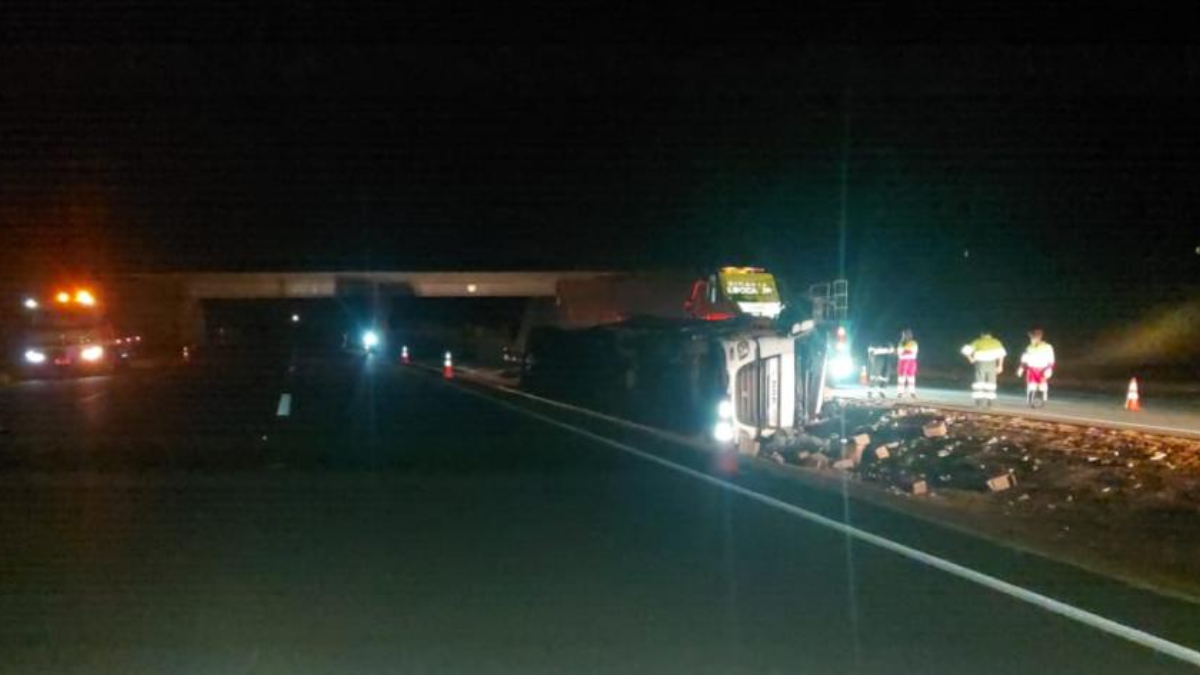 Segundo a Polícia Rodoviária Federal (PRF), a carreta saiu de Campo Alegre com destino a Catalão. No entanto, o motorista perdeu o controle da direção na altura de um viaduto, saiu da pista e tombou o veículo.