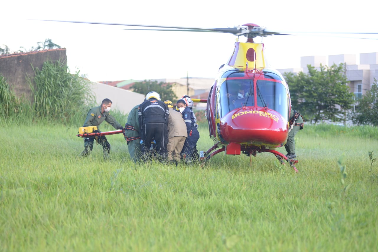 Vítima foi transportada a bordo do helicóptero do Corpo de Bombeiros para o hospital