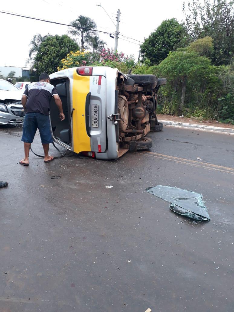 Motorista e sete crianças ficam feridos após colisão entre van escolar e carro, em Goiânia