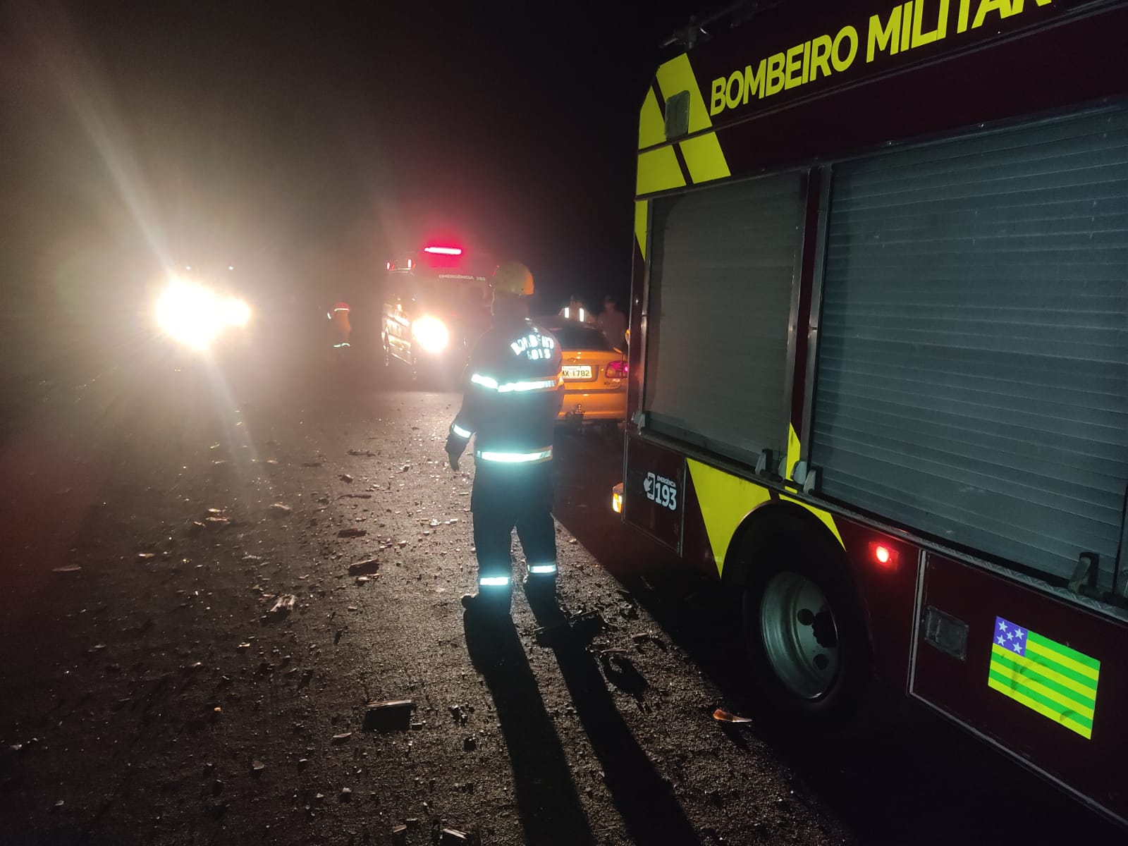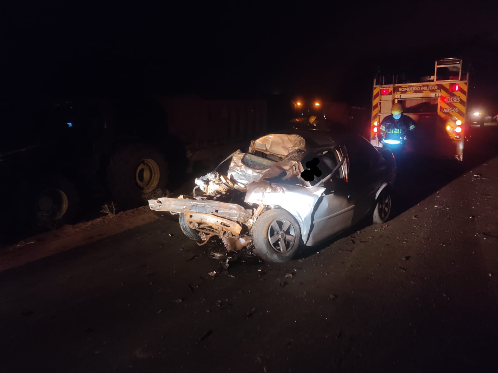 Um motorista morreu após colidir o carro contra um caminhão, na GO-206, em Quirinópolis, na madrugada deste domingo (29). (Foto: divulgação/Corpo de Bombeiros)