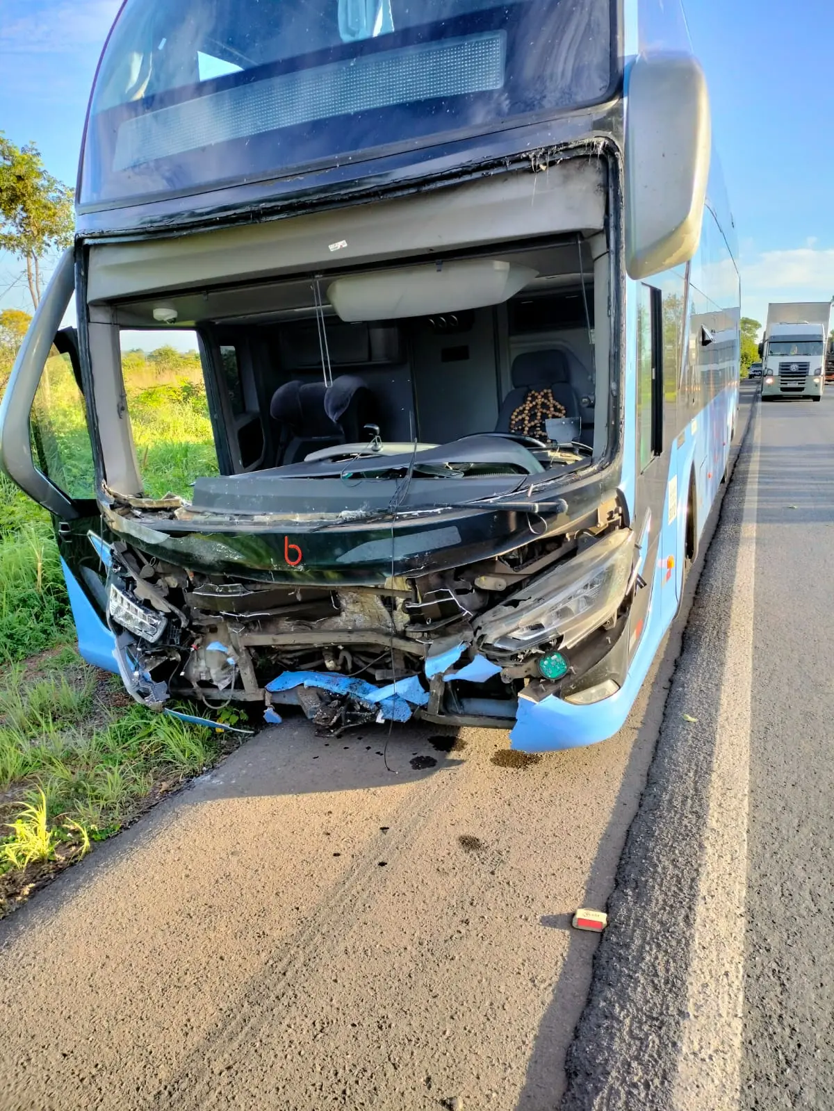 De acordo com informações da PRF, a colisão envolveu um ônibus, que seguia no sentido Brasília, e um veículo utilitário Saveiro, que trafegava do distrito de Santa Maria em direção a Alvorada do Norte. Durante o deslocamento, o automóvel teria invadido a pista contrária, provocando uma colisão frontal.