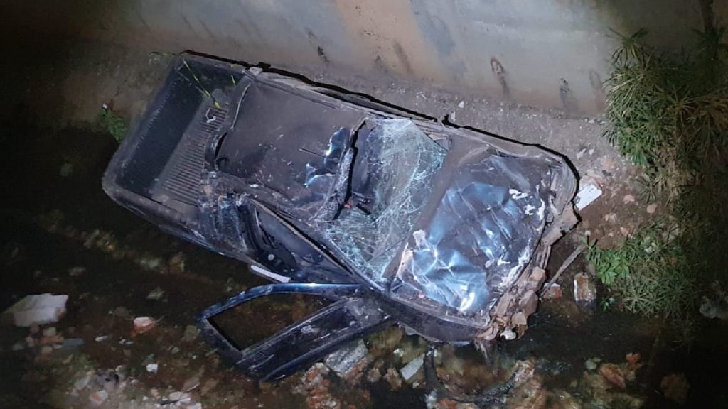 Carro cai no córrego Pirapitinga com duas pessoas a bordo