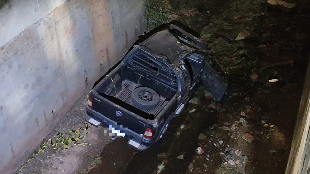 Carro cai no córrego Pirapitinga com duas pessoas a bordo