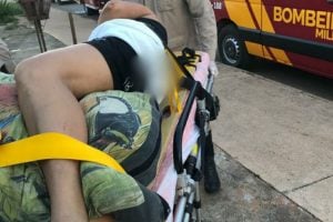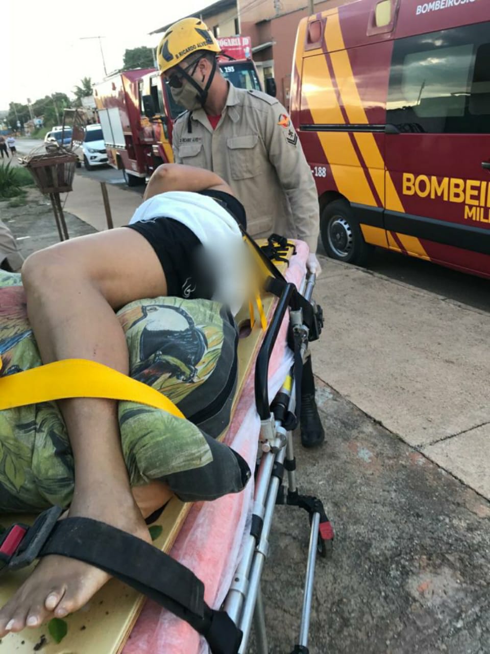 Os bombeiros militares foram acionados e serraram a barra de ferro que estava fixada no chão. Um pedaço do objeto, porém, ficou empalado na perna da vítima.