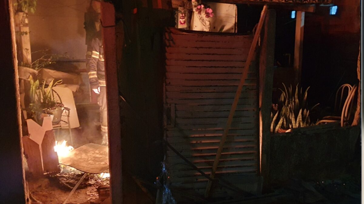 Ao chegar no local, os bombeiros constataram que o material que estava queimando eram pedaços de madeira e restos de um colchão de espuma, na frente da casa.